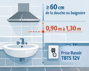 Salle bain : distance point eau et sécurité